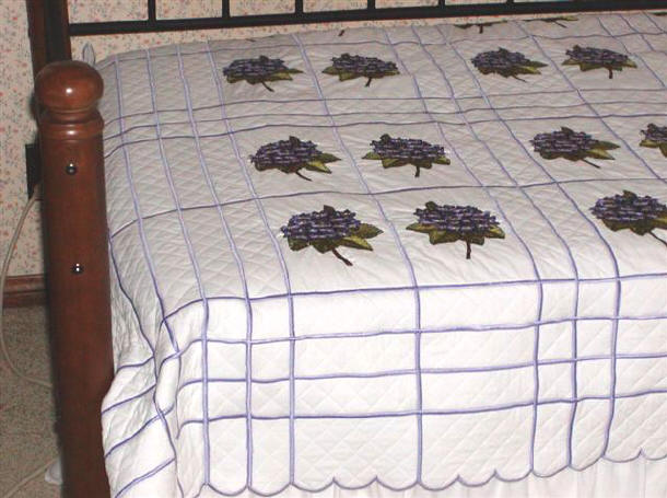Hydrangeas. This quilt is 65" X 95" and it goes on the daybed twin with