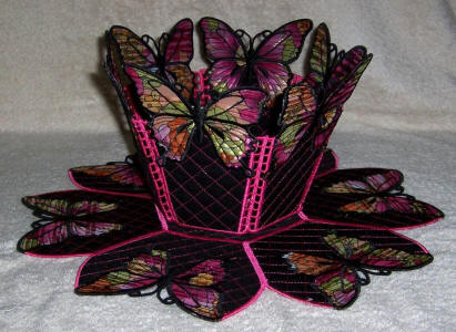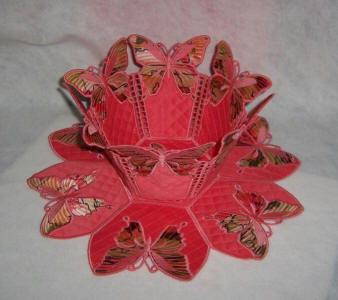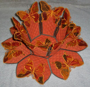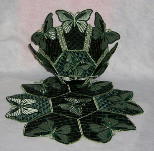 Kathy A in CA Hi Chantell Here are the pictures of the Bowls I have finished. I could not pick my favorite to show you, so here all of them (lol). Like I said I just love this set Kathy Kathy used this set Q0024 - Quilted Butterfly Basket, Doily and Bowl