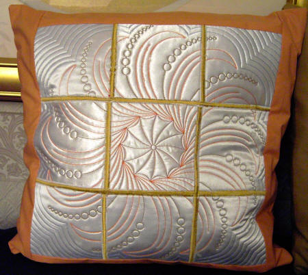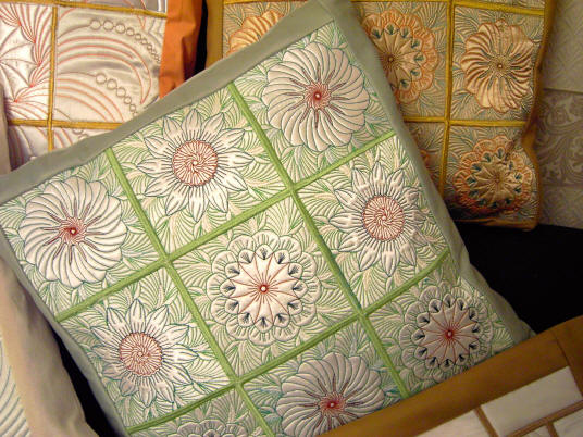 Doreen in the UK Here are a couple of photographs of the cushions I have made from your designs. The biggest cover was 22 inches as a special order. Kind regards, Doreen For the cushion above - Doreen used the 5x5 size of Q0271 - Echo Dreams 3 - 4x4 or 5x5 or 5.8x5.8 or 6x6 or 8x8 For the cushion above - Doreen used the 5x5 size of Q0255 - Petal Dreams - 4x4 or 5x5 or 6x6 or 8x8 For the cushion above - Doreen used the 5x5 size of Q0276 - Echo Dreams 4 - 4x4 or 5x5 or 5.8x5.8 or 6x6 or 8x8