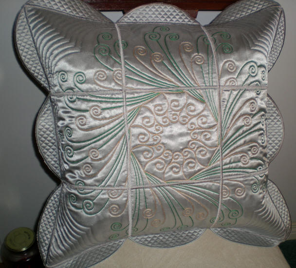 I used grey Wedding dress Satin, with tone on tone for quilting, Green