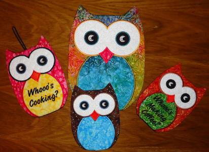 Q0380- Owls Set 2 - Mug Rugs/Pot Holders/Stuffed Toys-  5x7 or 5.8x7.8 or 7.8x11.7