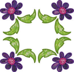 Q0372 - Rick Rack Squares with Fabric Leaves and Flowers - 5x5,6x6 and 8x8