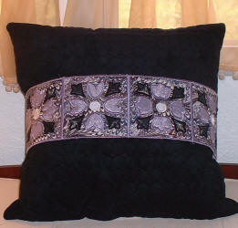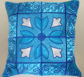 A cushion / pillow made from using two sets Q0163 - Floral Tiles 3 and Q0062 - Scroll Sashing Make a "pillow band" from the "all in one" floral tiles to slip over a plain pillow - Before After