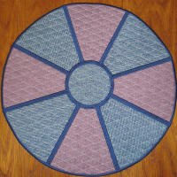 completed round placemat measures +- 14 inches