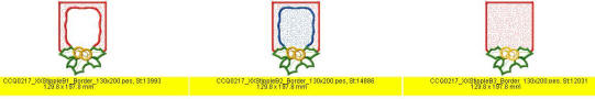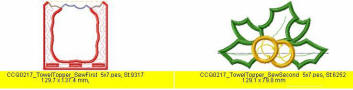 Quilt in the hoop Christmas Projects CCQ0217 129mm x 179mm (5x7) inches for the 150mmx240mm Set, please click here Table Toppers, Placemats, Bell Pull Type wall hanging, Towel Toppers and SEW many more projects are possible with this set Please take note that printed fabric was used for all these projects on display The Towel Topper / Border panels are made in two hoopings and when completed measures +- 5x7.7 inches (129x197mm) You Receive in this set all the necessary panels to make all these projects on display BONUS - for those of you who are able to embroider the border/towel topper - in one hooping, We have included 3 design files 130x200mm The quilting gets done in the hoop, so any fabric of your choice can be used.The towel, buttons, elastic for the towel, and hanging loop are not included - these you would need to purchase at your relevant shop. A PDF Document is included to assist you This Set is available in 5x7 inches - 129x179mm CCQ0217 - Christmas Projects - 5x7 US$30.00 To Purchase - Please click on your format 5x7 inches / 129x179mm DST HUS JEF PES VIP